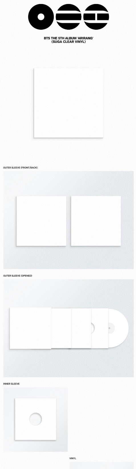 -Version : Group Red Viny / RM Silver Vinyl / Jin Pink Vinyl / SUGA Clear Vinyl / j-hope Cream Vinyl / Jimin Burgundy Vinyl / V Velvet Red Vinyl / Jung Kook Orchid Vinyl / Random